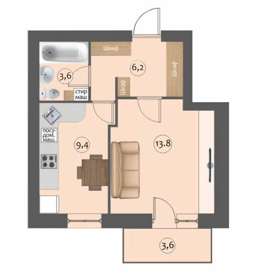 1-комн. квартира. 34.8 кв.м